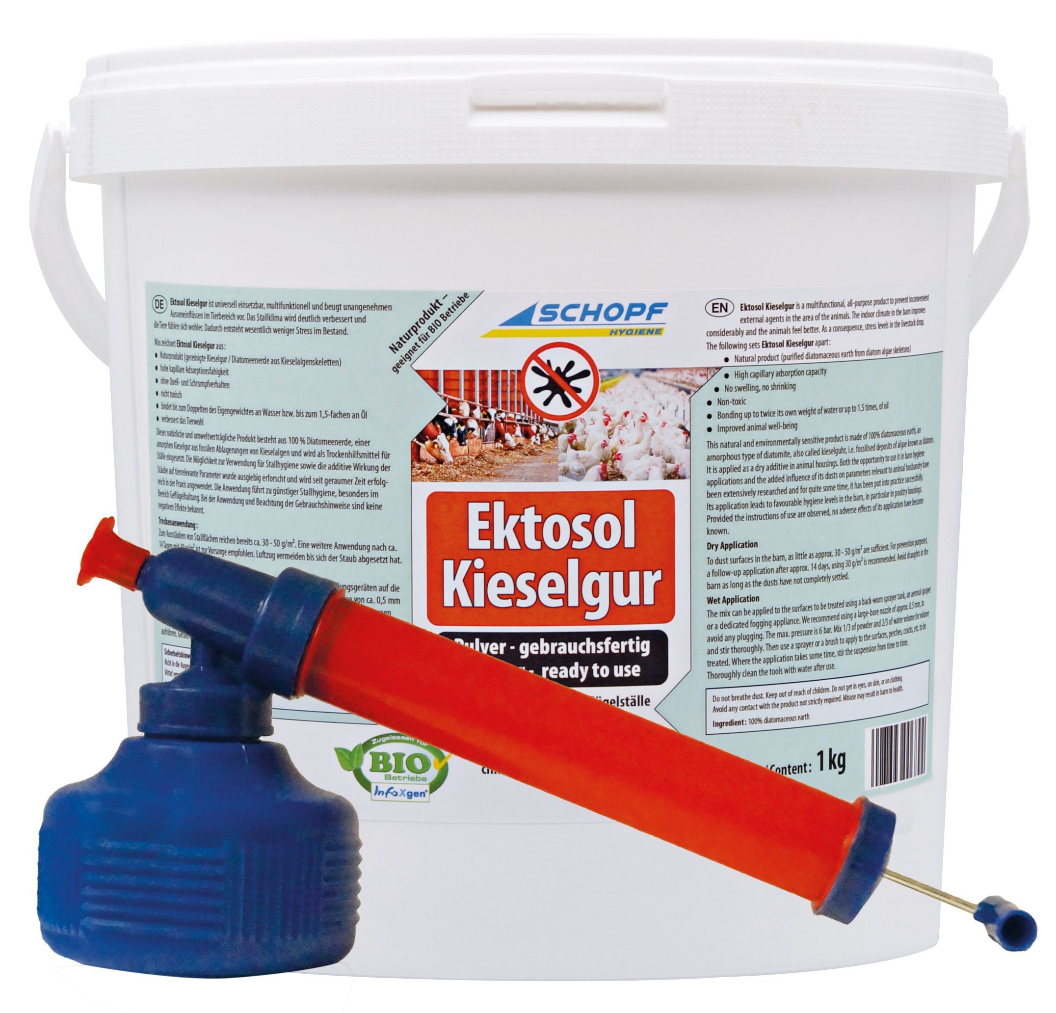 <h2>SCHOPF Hygiene® Ektosol® Kieselgur, 1 kg + Pulverzerstäuber</h2>