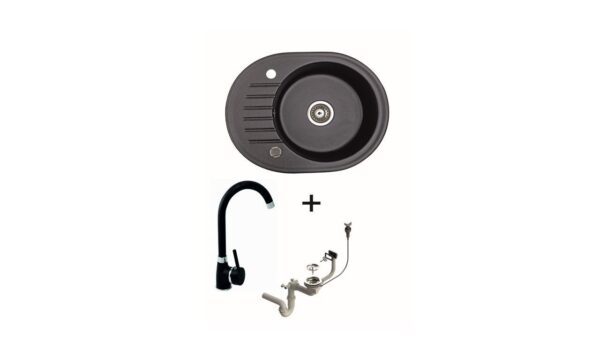 Spülbecken AMON / Waserhahn / Siphon / 60×47 / Küchenspüle / Granitspüle / Einbau