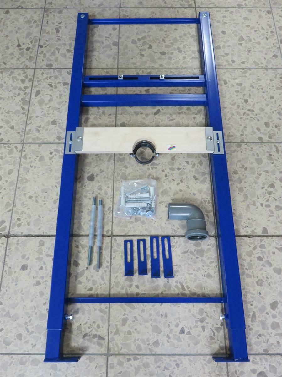 Waschtisch Trockenbauelement für wandhängenden Waschtisch Bauhöhe 1150 mm für eingebaute oder Gipskarton-Wandinstallation Höhenverstellbar von 0 bis 200 mm laser geschweißt Rahmen nach RAL5005 signalblau lackiert Holzplatte zum Aufschrauben der Wandscheiben Halter für Ablauf inkl. HT-Bogen 50mm 87&d… Mehr